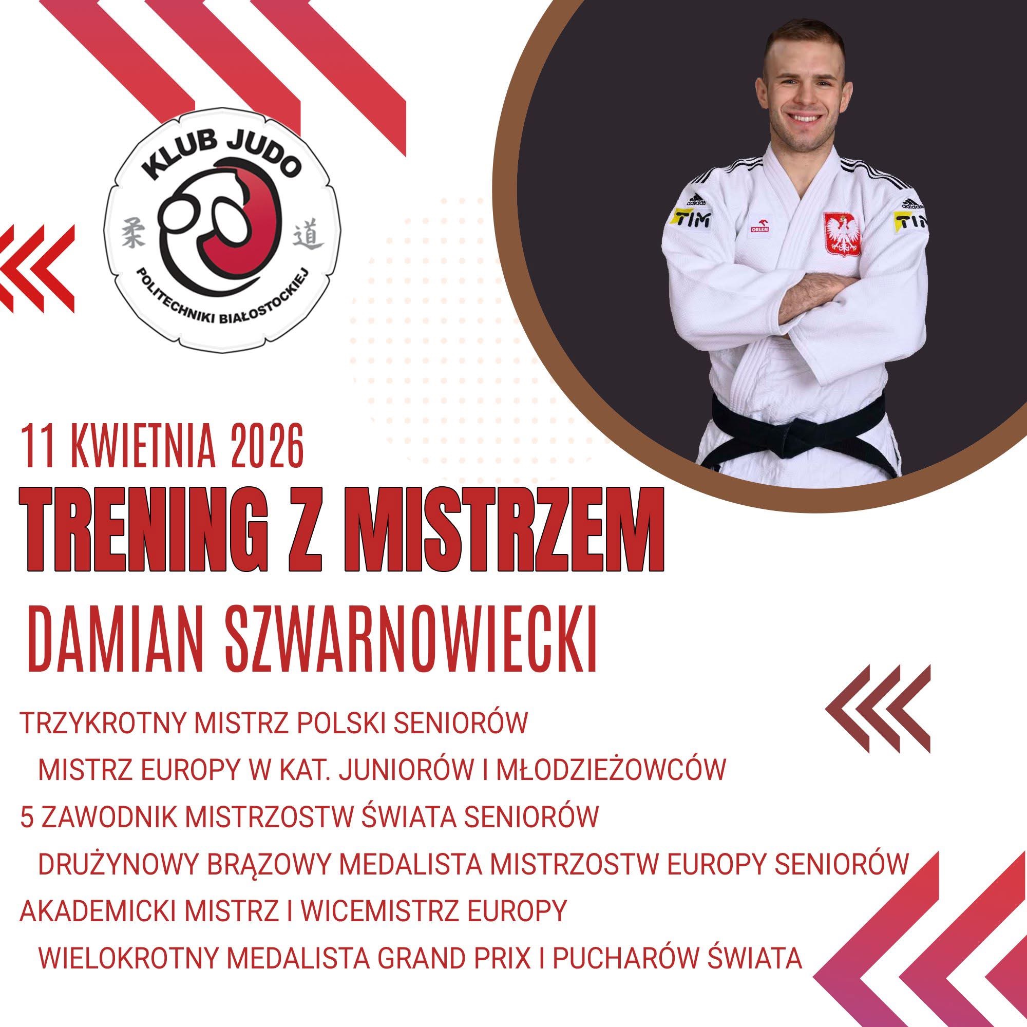 UWAGA🥋Szykujcie judogi i dużo energii, bo już 11.04.2026 odwiedzi nas prawdziwy mistrz – Damian Szwarnowiecki 🔥